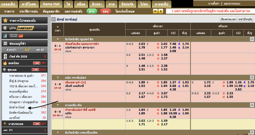 แทงบอลสเต็ป (Mix Parlay):